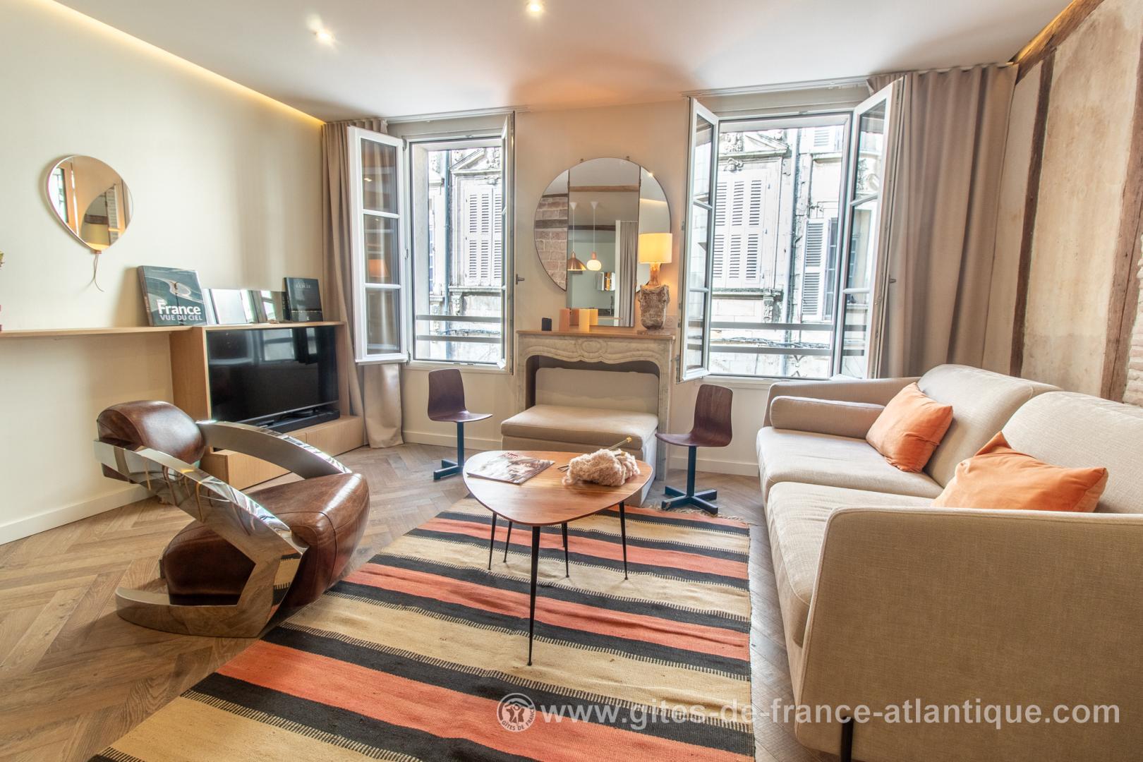 Appartement situé au cœur de La Rochelle dans un immeuble classé du XVIIIème siècle. A 5 minutes à pied du Vieux Port et proche de tous commerces, l'appartement est dans l'hypercentre de La Rochelle. Plusieurs parkings (payants) dans un rayon de 300 m.