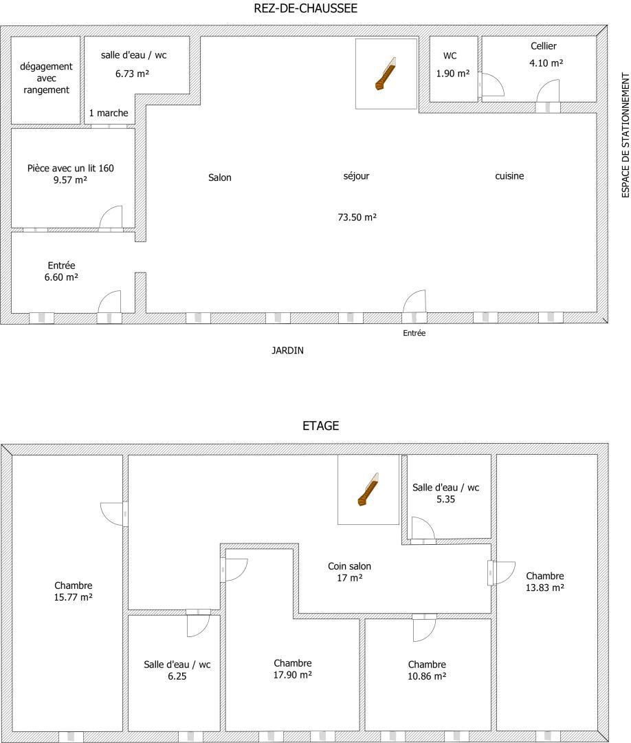 - 4 chambres : 2 chambres avec 1 lit 2 personnes (160x200), 1 chambre avec 2 lits 1 personne (90 x 200 jumelables en 180), 1 chambre avec 1 lit 2 personnes en 180 (90 x 200 jumelables).