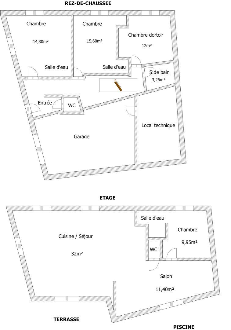 - 2 chambres avec 1 lit 2 personnes (160x200) et salle d'eau.