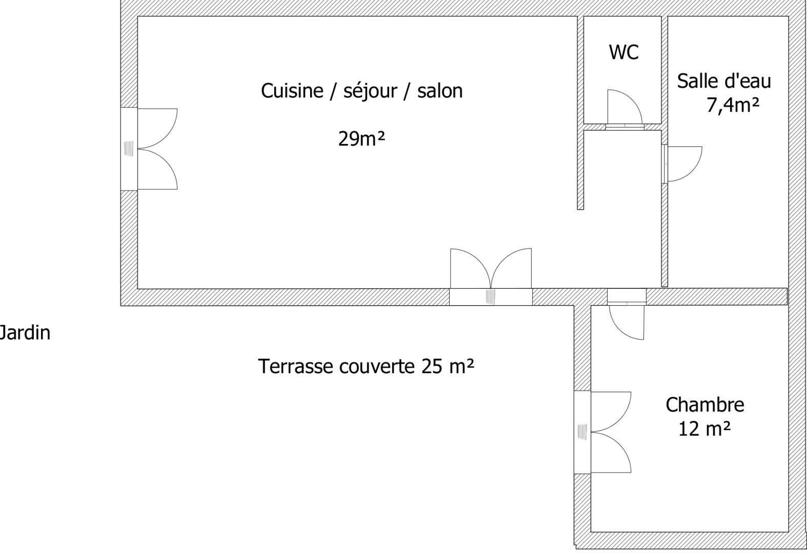 - Jardin et terrasse sous préau clos privés.