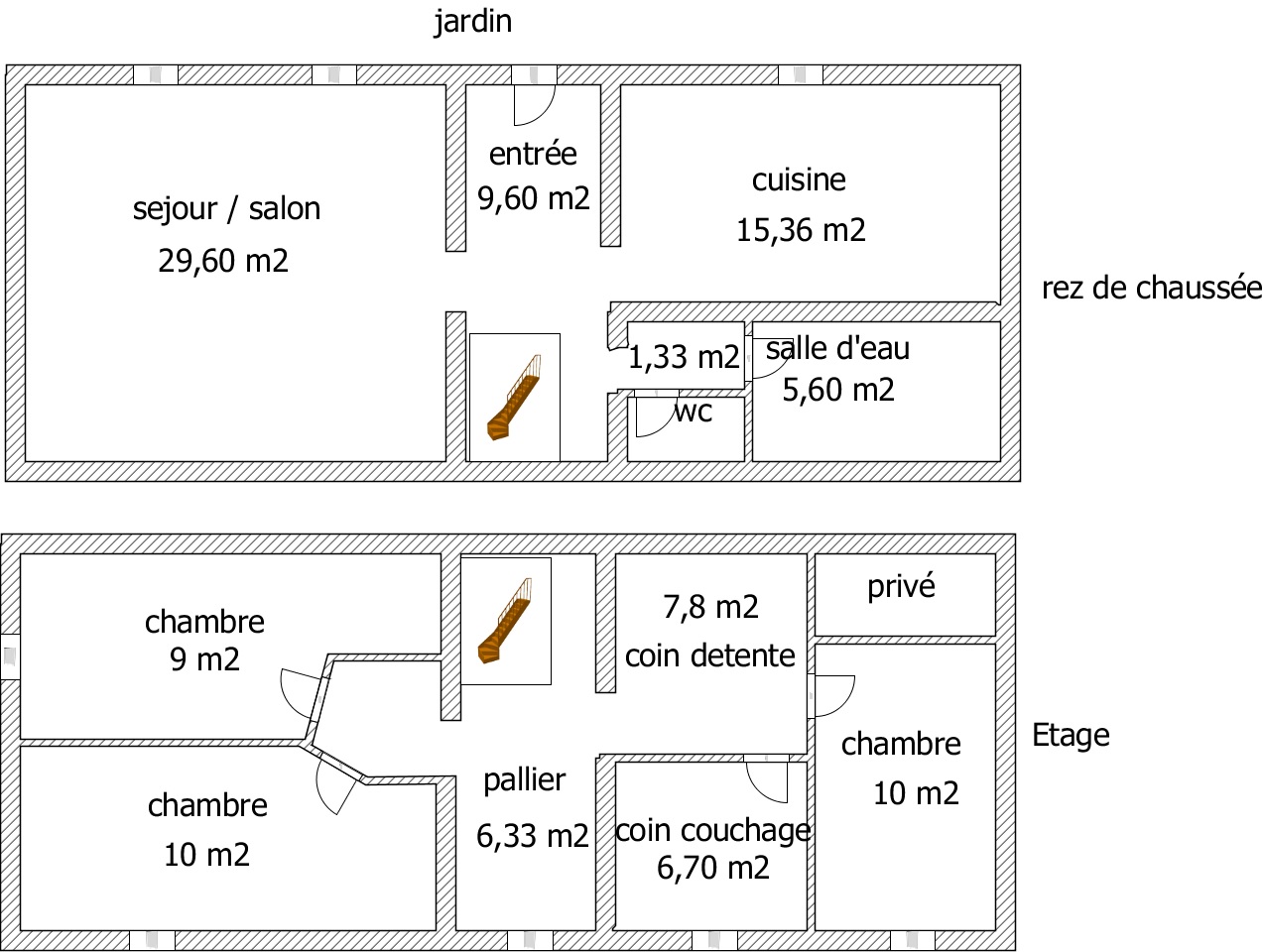 - 3 chambres avec un lit 2 personnes (140x190) chacune.