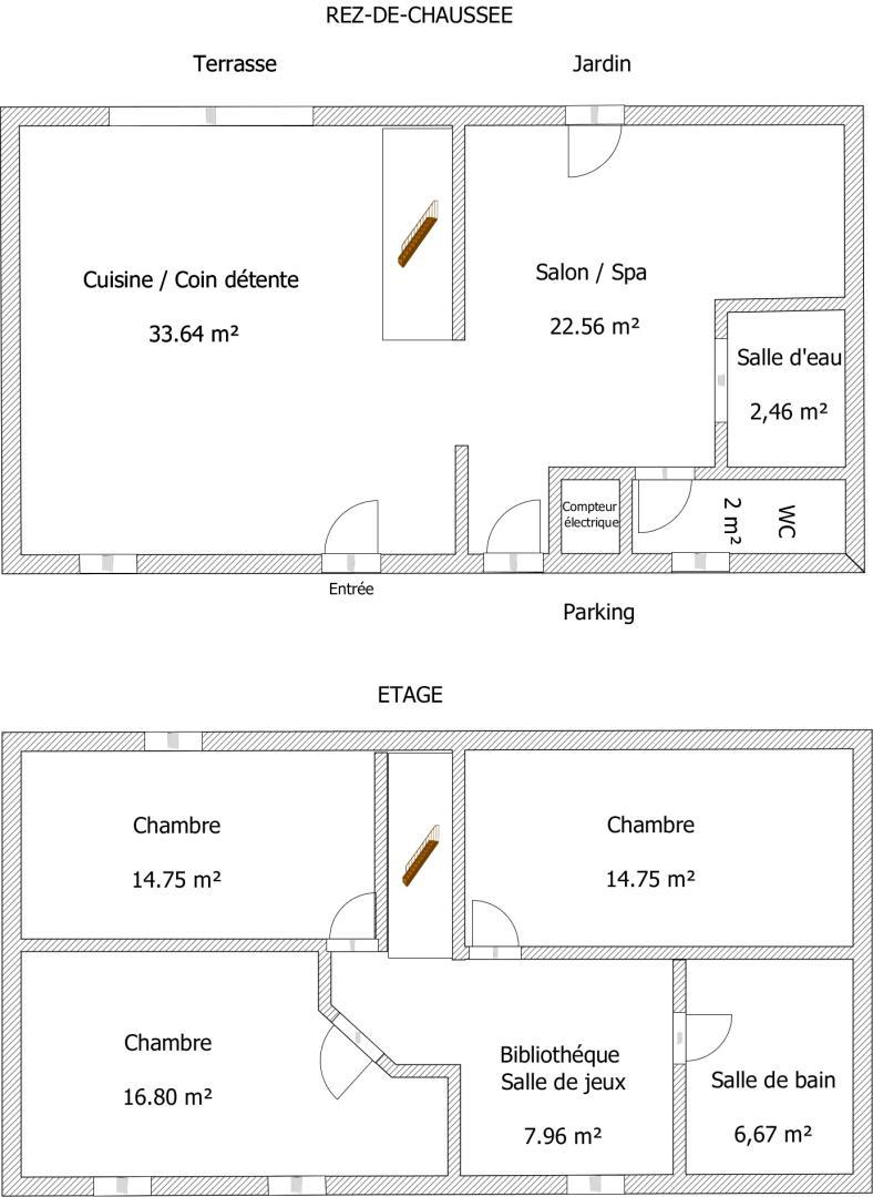 - Une chambre avec deux lits 1 personne (90 x 200).