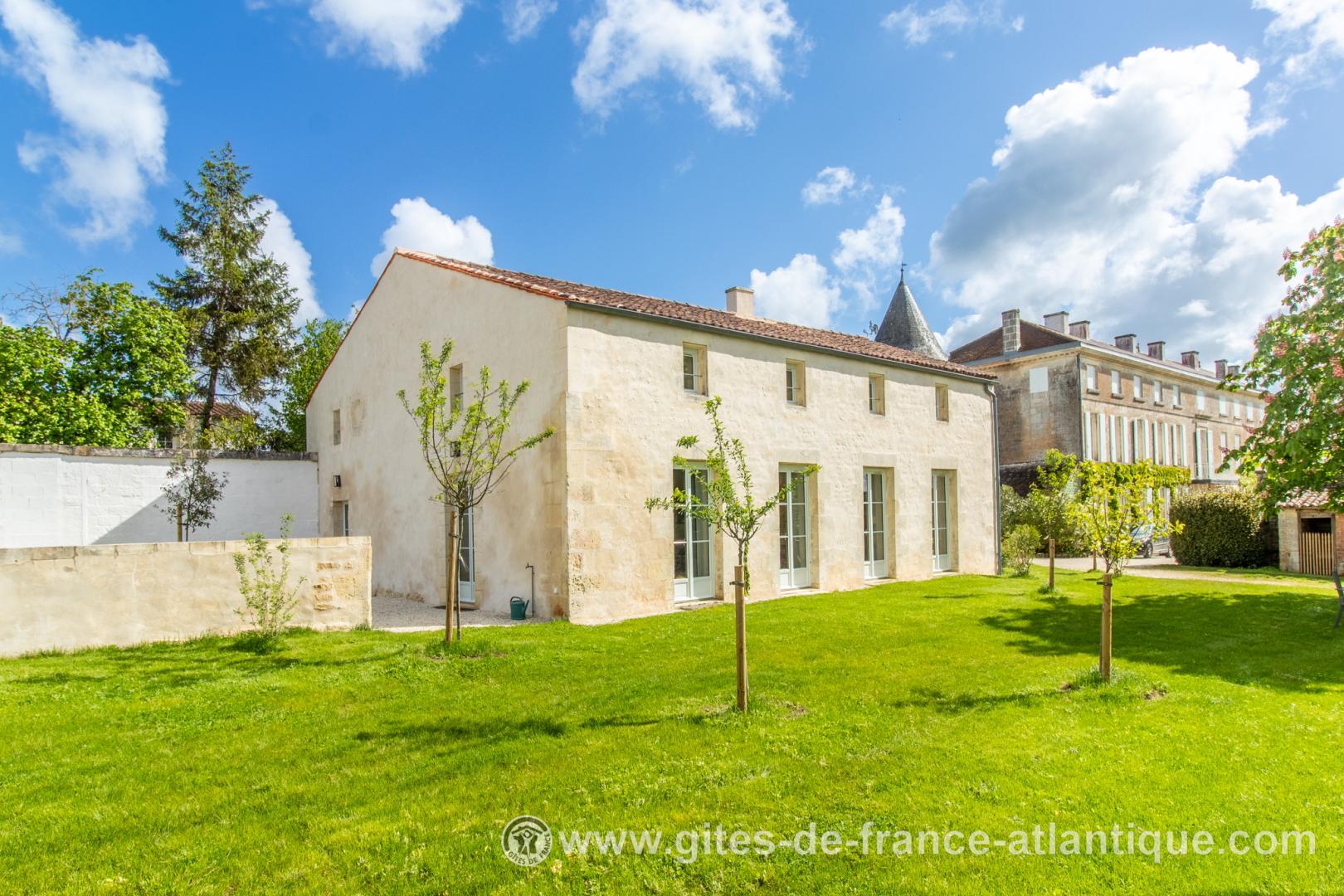 Aménagé dans l'ancienne Orangerie du château dont il dépend, ce grand gîte ouvre au sud sur une belle terrasse arborée qui domine la vallée de la Charente.