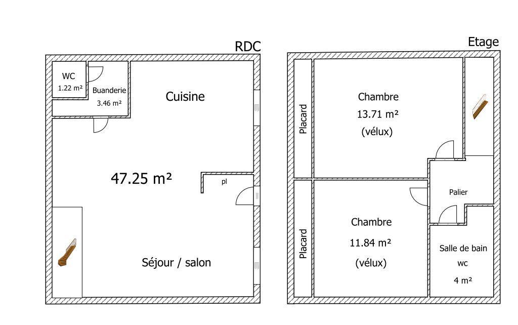 - 2 chambres, accès par escalier raide mais pouvant être sécurisé par portillon enfant. Chambre 1 avec deux lits 1 personne (90 x 190), chambre 2 avec un lit 2 personnes (140 x 190).