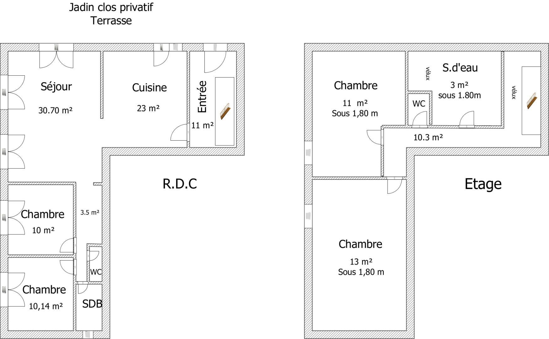 Chambre 1 10 m² Rez-de-chaussée