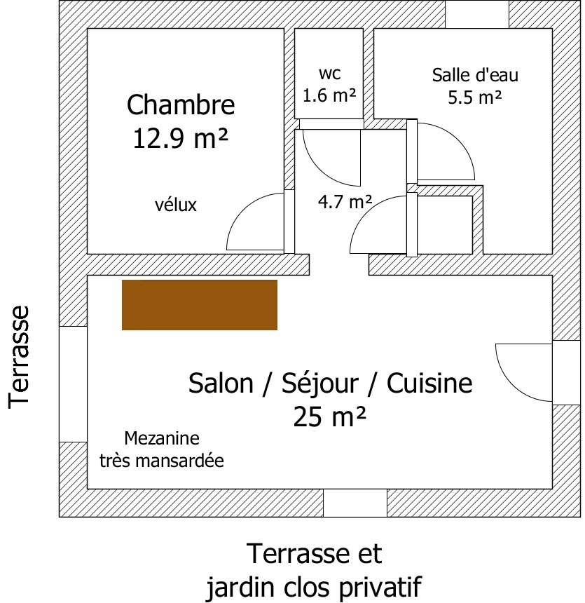 Gîte rural en pierre apparente, indépendant, de plain-pied, de construction récente, à proximité de la maison des propriétaires. Cuisine/séjour/salon. Mezzanine très mansardée avec couchage d'appoint (ne convient pas pour les jeunes enfants). Une chambre avec un lit 2 personnes (180x200). Salle d'eau. Wc. Terrasse avec salon de jardin, 2ème petite terrasse sous pergola ombragée, dans un jardin clos privatif. Chauffage électrique payant sur relevé. Démarche personnelle du propriétaire pour la biodiversité : 2 ruches dans son jardin personnel situé à 50 m du gite (miel en vente auprès du propriétaire).